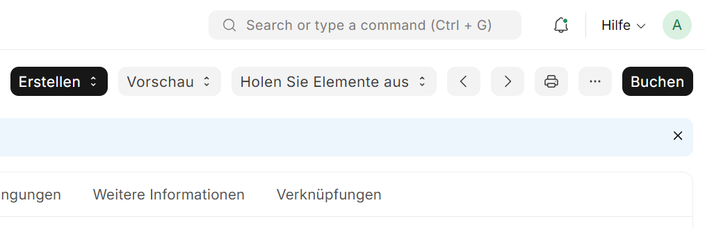 - Eintrag Auf der rechten Seite findet ihr dann ein Menü mit speichern, erstellen, buchen, etc.