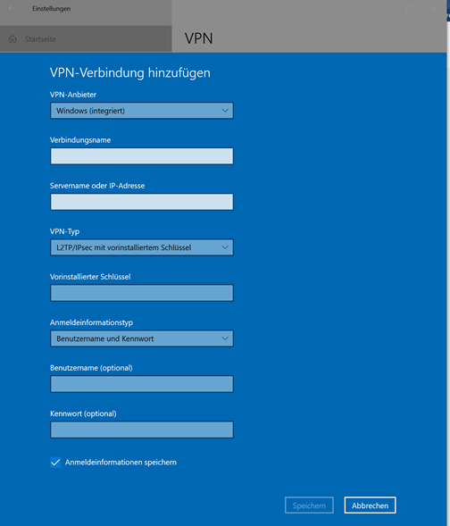 - VPN-Typ: L2TP/IPsec mit vorinstalliertem Schlüssel